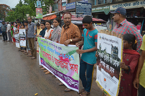 Being complied with International Labor Organization (ILO) Sonar Bangla Foundation has successfully organized the World Day against Child Labor 2019. There were a set of programs successfully executed on behalf of the SBF. There was the rally, Human Chain and Discussion Meeting giving focus of the day’s issue. In the rally, human chain and discussion meeting there were the representation of the vulnerable children. Firstly a well decorated rally moved to Kaligonj main Bus station and rounded the cross roads with banner, placard and festoon. Due to Covid-19 situation there was no slogan. After the end of the rally there was organized a human chain aiming at letting more people knows about the day’s issue. The duration of the human chain was only for 10 minutes. After the ending of the human chain a short duration discussion meeting was arranged at the SBF’ Seminar Room. In the discussion meeting there were present Upazila Social Welfare Officer Md. Julfiqur Ali as the chief guest and Upazila Rural development Officer Md. Abu Billal Hossen as the special guests. The ED of the SBF was there and presided over the discussion session on for the World Day against Child Labor. SBF Coordinator M.K.Mondol Mohen facilitated the discussion session with necessary inputs for disseminating valuable messages with regard to World Day against Child Labor-2019.